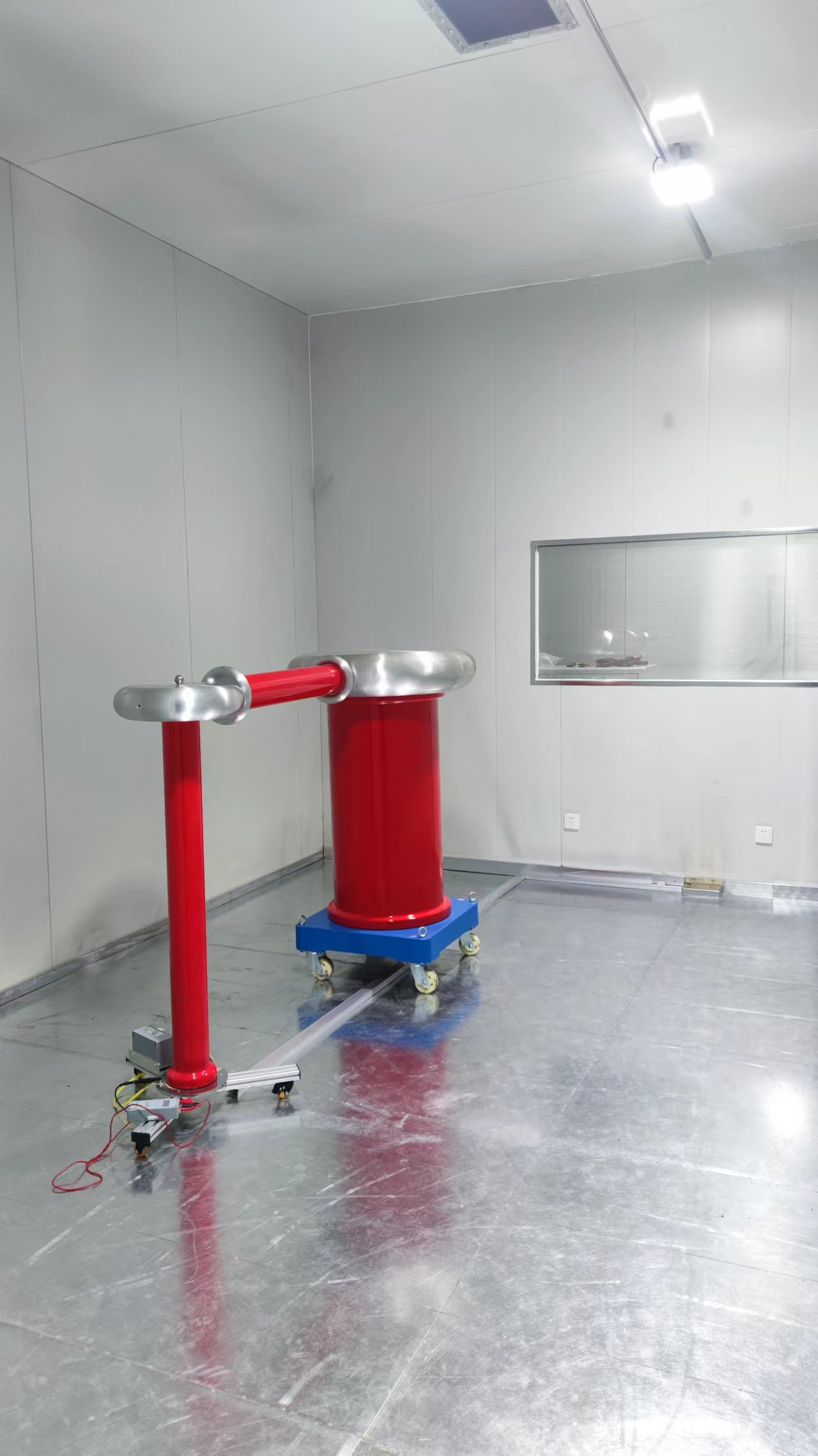 絕緣地坪采用5mmPP絕緣板焊接組成的隔離層,絕緣地坪尺寸:長7.5米×寬5.5米,試驗區域與外界的絕緣電阻要求10kΩ以上,確保整個試驗系統與車間沒有任何電氣連接,防止生產車間中其他電氣設備的干擾信號通過靜電耦合的方式傳導到試驗區域的地表或地下的金屬件(如鋼筋等),最終通過地線傳入到測試回路中。